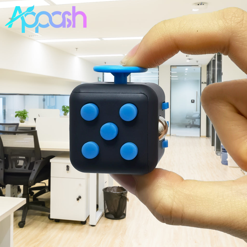Appash Fidget Cube Stress Anxiety Pressure Relieving Toy Great for Adults and Children[Gift Idea][Relaxing Toy][Stress Reliever][Soft Material](Black & Blue)